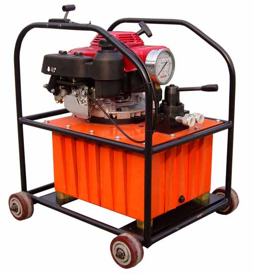 J系列机动泵站,采用日本本田公司生产的汽油机作动力源,油泵可分单级泵、双级泵,可配置手动换向阀等控制元件,可实现多种油路控制形式。