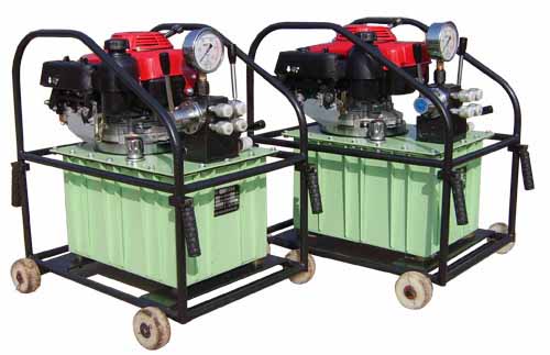 J系列机动泵站,采用日本本田公司生产的汽油机作动力源,油泵可分单级泵、双级泵,可配置手动换向阀等控制元件,可实现多种油路控制形式。